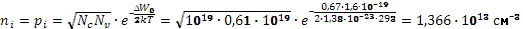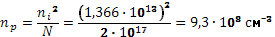 Определить концентрацию электронов и дырок в собственном и примесном полупроводнике, содержащем