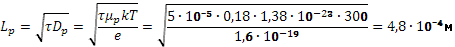 Определить диффузионную длину движения неравновесных носителей заряда в полупроводниковом материале при заданной температуре