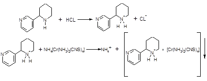 NH4 [ Cr ( NH3 ) 2 ( NCS) 4 ] × H2 O+ HCl (конц) → H [ Cr ( NH3 ) 2 ( NCS) 4 ] ×2 H2 O+ NH4 Cl