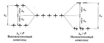 [3] ,6 Схема образования высокоспиновых и низкоспиновых комплексов: