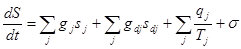 Изменение энтропии системы S происходит вследствие притока энтропии вместе с веществами, поступающими конвективно и диффузионно, притока и отвода тепла и производства энтропии