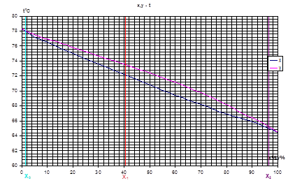 t0 находим по диаграмме x,y – t (смотрим по x0 ). t0 = 78,0 0 C .
