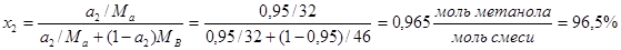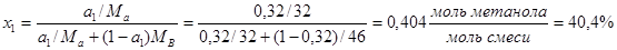 Рассчитать тарельчатую ректификационную колонну непрерывного действия для разделения бинарной смеси метанол – этанол , подаваемой в колонну при температуре равной температуре кипения. Колонна работает под атмосферным давлением. Исходные данные : расход g 1 = 4,2 кг/с , процентные массовые концентрации: исходной смеси a 1 = 32% , дистиллята a 2 = 95% , кубового остатка a 0 = 2% , коэффициент избытка флегмы 4 , давление греющего пара P гр =1,5 ата , начальная температура охлаждающей смеси t ’ в = 18 0 C .