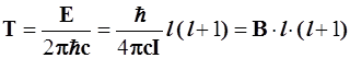 Поскольку квадрат момента импульса в жестком ротаторе однозначно связан с энергией (4.47), формула (4.101) позволяет легко рассчитать его уровни и спектральные термы (Т ), т.е. уровни, выраженные в единицах измерения волнового числа (см–1 ) , являющегося характеристикой излучения