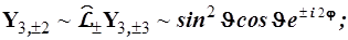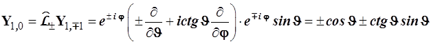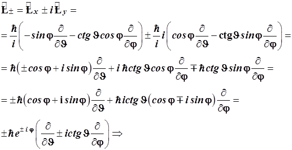4.3.8.2. Прежде всего, выпишем операторы повышения и понижения в сферических координатах, используя формулы (4.53) и (4.54):