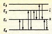 Число фотонів z , що випускаються речовиною при переході електронів з рівня і на рівень k , пов’язано з числом атомів в стані і (Ni ) відношенням