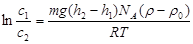 с 1 , с 2 – концентрации на уровнях h 1 и h 2 соответственно;