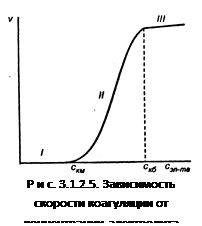 Зависимость скорости коагуляции от концентрации электролита представлена на рис. 3.1.2.5.