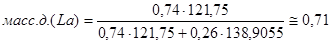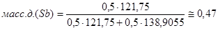 2.1.5 Воспользовавшись данными, полученными в пункте 2.1.1, определим по правилу рычага для системы La - Sb, содержащей 0,6 ат.д. Sbпри температуре 12000 C и при массе сплава 50г массы равновесных фаз: