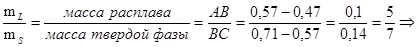 2.1.4 Определить природу и состав первых выпавших кристаллов из расплава, содержащего, 0,6 ат.д. Sb , а так же состав последних капель этого расплава.