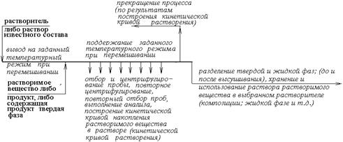 Рисунок 4 - Пооперационная схема изучения кинетики растворения бензоата свинца в растворе бензойной кислоты в различных растворителях в условиях интенсивного перемешивания магнитной мешалкой при температуре 22°С.