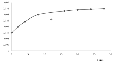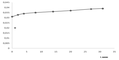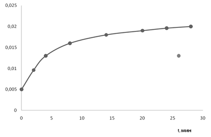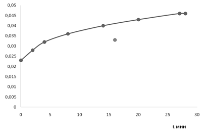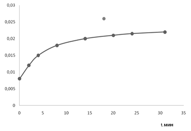 Рисунок 6 – Изучение кинетики растворения бензоата свинца в растворе бензойной кислоты в этиленгликоле (концентрация кислоты 0,35 моль/л), t= 22єC