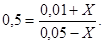 0,025-0,5Х=0,01+Х или 1,5Х=0,015