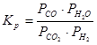 Для вычисления константы равновесия Kp воспользуемся парциальными давлениями реагирующих веществ: