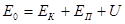 кинетическая энергия движущейся системы, потенциальная энергия обусловленная воздействием на систему внешних силовых полей, внутренняя энергия.