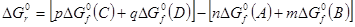 в ходе химической реакции равно сумме энергий Гиббса продуктов реакции за вычетом суммы энергий Гиббса реагентов с учётом стехиометрических коэффициентов: ![]()
