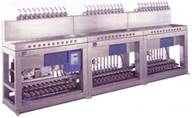 Не производилось в России и красильно-отделочное оборудование, если не считать изготовления отдельных машин в механических и чугунолитейных мастерских некоторых крупных фабрик. Заводское производство красильно-отделочного оборудования началось в России только в 90-х годах XIX в. Развитие красильно-отделочных машин шло как в направлении выполнения технологических операций и совершенствования механической части машины, специализации и агрегирования, так и по пути снижения расходов красителей, воды, пара, топлива и энергии, связанных с выполнением операций.