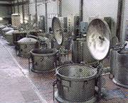 Техника отварки суровья перед крашением получила в рассматриваемый период значительное развитие. В середине XIX в. широкое применение получили "бардовские котлы". Установленные вертикально два котла, каждый емкостью по 750 м3 , составляли один аппарат. Одна и та же порция жидкости (раствор едкой извести для хлопчатобумажной ткани) работала периодически, то в одном, то в другом котле несколько раз. Варка шла непрерывно под давлением 3-4 атмосфер в течение 8-14 часов. Позднее котел подвергся усовершенствованию: распределение жидкости по поверхности заложенной в котел ткани стало осуществляться инженером, что значительно улучшило и ускорило качество отварки.