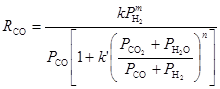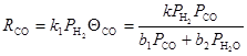 На Co-содержащем катализаторе (Co/CoO) эмпирические модели (12) и (13) не включают РН2О, но отражает сильное торможение по РСО
