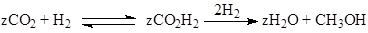 Вместе с тем исходная шихта, подаваемая в реактор, содержит 8 – 11% СО2, 16 – 21% СО и 67% Н2. Известно, что СО2 также подвергается гидрированию до метанола в условиях процесса
