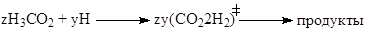 где KII – константа равновесия реакции (16). Рассматривали два сорта центров z и y (равномерная неоднородность) с лимитирующей стадией (24)