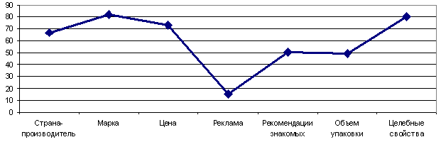 Что же касается целебных свойств воды, то на этот критерий обращают внимание почти 80% респондентов. Выбор той или иной марки воды они связывают с наличием/отсутствием лечебных свойств. Этим фактором во многом объясняется лидирующее положение минеральных вод («Боржоми», «Нарзан», «Ессентуки») в объеме потребления несладкой воды, а также в какой-то мере критерий значимости марки при выборе несладкой воды. Подавляющее число респондентов считает, что минеральная и столовая вода должна обладать лечебными свойствами, поэтому они предпочитают покупать и потреблять отечественные марки минеральной воды, чьи лечебно-профилактические свойства давно известны.
