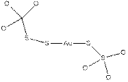 В современной клинической хризотерапии наиболее широко используются соединения золота с тиомалоновой кислотой и тиоглюкозой. В меньшей степени применяются тиосульфат и тиопептиды золота. Исследование структуры тиолов Аи (I) показало, что в водном растворе они представляют собой полимеры. По данным измерений молекулярной массы, ИК-спектров и спектров ПМР на ядрах 13 С тиомалат золота содержит кластеры из четырех атомов золота и семи тиомалонатных анионов, связанных с металлом через атомы серы. Изучение тиомалата золота (I) в водном растворе доказало существование при высокой ионной силе чувствительных к действию кислот координированных тиомалонатных анионов трех типов. Необходимо отметить легкость замещения тиола в соединениях золота, чем, возможно, и объясняются распределение миокризина в организме и некоторые из его побочных эффектов. Методом рентгеноструктурного анализа установлено строение ауротиосульфата: