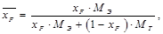 Пересчитаем составы фаз из мольных долей в массовые доли по соотношению: