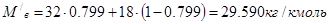 Мольную массу дистиллята в данном случае можно принять равной мольной массе легколетучего компонента – этилацетат. Средние мольные массы жидкости в верхней и нижней частях колонны соответственно равны: