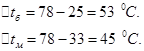 Средние температуры паров определим по диаграмме