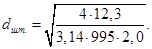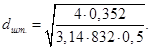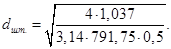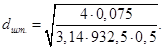 6.13 Определим внутренний диаметр штуцера, для входа пара в кипятильник