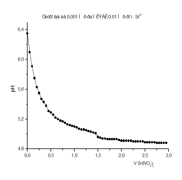 Результаты рН - метрического титрования 0,001 М р-ра ПКЭАК 0,01 н. р-ром Sr(NO3 )2