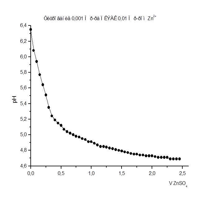 Результаты рН - метрического титрования 0,001 М р-ра ПКЭАК 0,01 н. р-ром ZnSO4