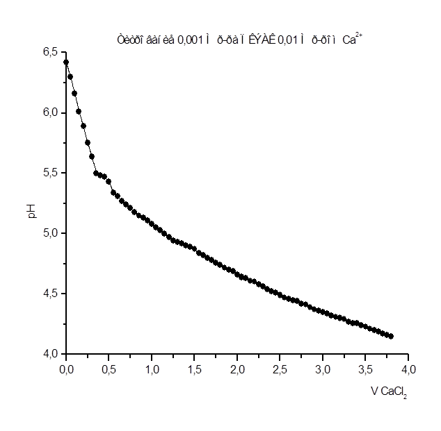 Результаты рН - метрического титрования 0,001 М р-ра ПКЭАК 0,01 н. р-ром CaCl2