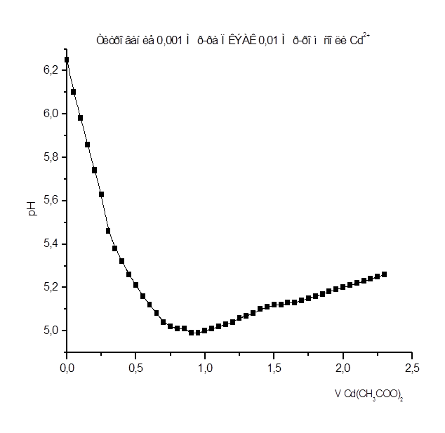Результаты рН - метрического титрования 0,001 М р-ра ПКЭАК 0,01 н. р-ром Cd(CH3 COO)2