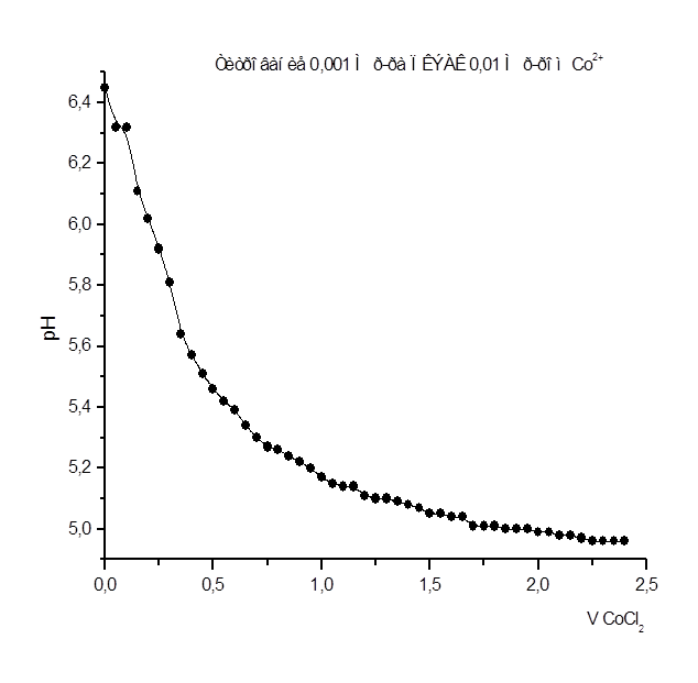 Результаты рН - метрического титрования 0,001 М р-ра ПКЭАК 0,01 н. р-ром CoCl2