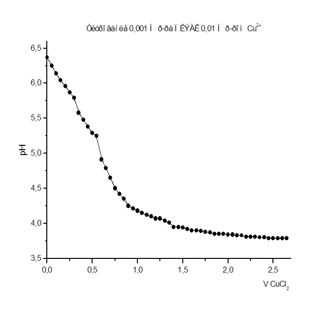 Результаты рН - метрического титрования 0,001 М р-ра ПКЭАК 0,01 н. р-ром CuCl2