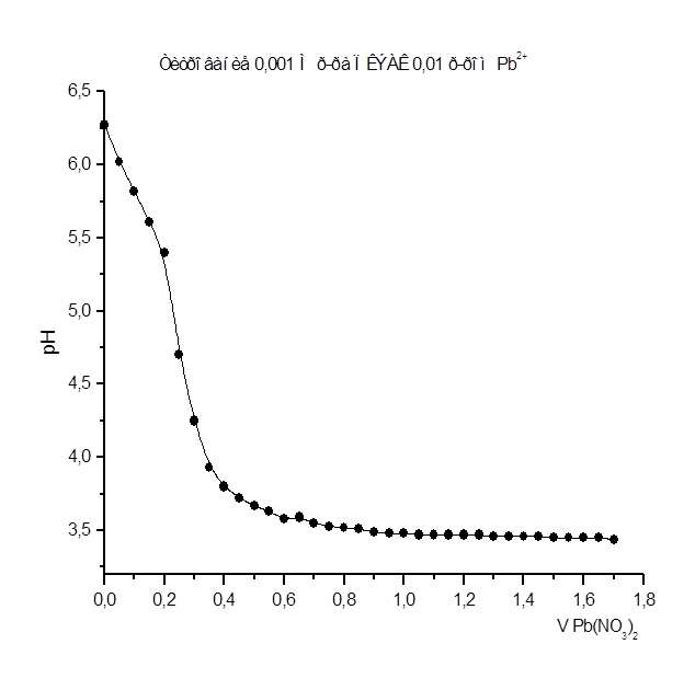 Результаты рН - метрического титрования 0,001 М р-ра ПКЭАК 0,01 н. р-ром Pb(NO3 )2