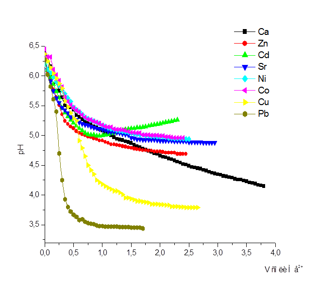 1. Исследование взаимодействия линейного полиэлектролита с ионами двухвалентных металлов: Ca, Sr, Ni, Co, Cd, Pb, Zn, Cu.