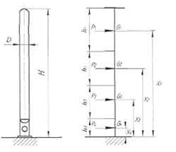Изгибающий момент от действия ветровой нагрузки на одну площадку, расположенную на высоте хi - от основания аппарата, Мв ni определяется по формуле