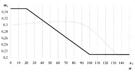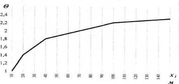 при x3 =9,75 м => q3 =θ3 ·q0 ·К =1·300·0,6=180Па;