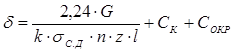 где G – максимальный вес аппарата, МН (обычно бывает во время испытания, когда аппарат заполнен водой); n – число лап (не менее двух); z- число рёбер в одной лапе (1 или 2); σс.д – допускаемое напряжение на сжатие (можно принять равным 100 МН/м2 ); l – вылет опоры, м. Значение коэффициента k рекомендуется предварительно принять k = 0,6. Если при этом δ получится не менее l/13, то расчётная величина δ является окончательной. В противном случае значение коэффициента k необходимо уменьшить с пересчётом толщины δ и последующей проверкой l/δ по графику.