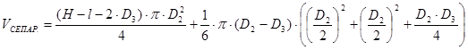 V = 3,14 + 20,57 + 2,88 = 26,59 м3