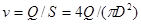 5. Определяют среднюю скорость течения эмульсии в трубопроводе:
