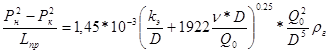 где Рн , Рк – соответственно начальное и конечное абсолютное давление газа на расчетном участке трубопровода, атм.