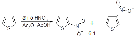 Как и следовало ожидать, для тиофена характерны реакции, свойственные ароматическим соединениям типа бензола. Тиофен галогенируется, нитруется, сульфируется и ацилируется аналогично фурану и пирролу, но в более жестких условиях.