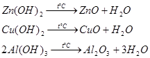 Запишем реакции разложения для гидроксидов цинка, меди, алюминия: