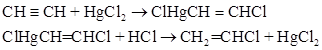 Метод получения винилхлорида из ацетилена состоит в присоединении хлористого водорода по уравнению:
