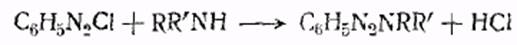 Образование диазоаминосоединений. Присоединение солей диазония к первичным или вторичным аминам ведет к образованию в качестве первичного продукта реакции диазоаминосоединения.