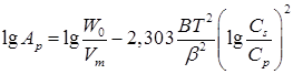 Теория полимолекулярной сорбции, в основе которой лежит представление о многослойной сорбции на поверхности макро- и мезопористого сорбента, была разработана Брунауэром, Эметом и Теллером. Однако в практике наибольшее распространение получили микропористые сорбенты, в чрезвычайно малом пространстве микропор которых послойной сорбции вещества на поверхности не происходит. При сорбции в микропорах происходит заполнение части или всего объема их сорбатом, который под действием взаимно усиливающихся и перекрывающихся адсорбционных полей, создаваемых противоположными стенками пор, находится в специфическом уплотненном состоянии. Теории объемного заполнения микропор, разработанная Дубининым и его школой, использует понятие о предельном объеме адсорбционного пространства микропористого сорбента W 0 . Основное уравнение адсорбции паров и газов на микропористых сорбентах, известное как уравнение Дубинина – Радушкевича, имеет вид: